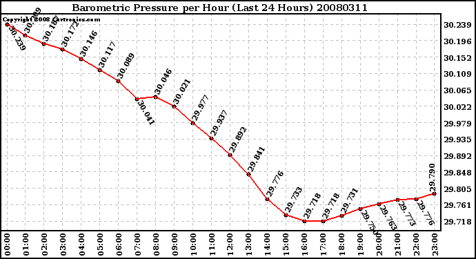 Milwaukee Weather -- 20080311 Barometric Pressure per Hour (Last 24 Hours) -- From curtronics.com by Curt Blank