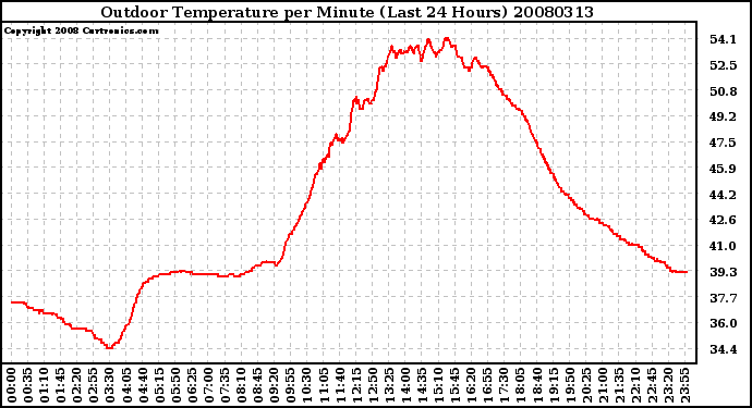 Milwaukee Weather -- 20080313 Outdoor Temperature per Minute (Last 24 Hours) -- From curtronics.com by Curt Blank