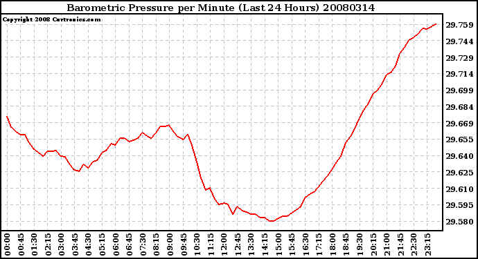Milwaukee Weather -- 20080314 Barometric Pressure per Minute (Last 24 Hours) -- From curtronics.com by Curt Blank