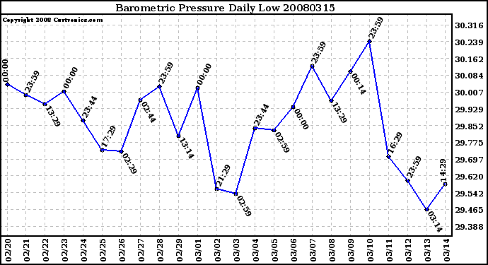 Milwaukee Weather -- 20080315 Barometric Pressure Daily Low -- From curtronics.com by Curt Blank