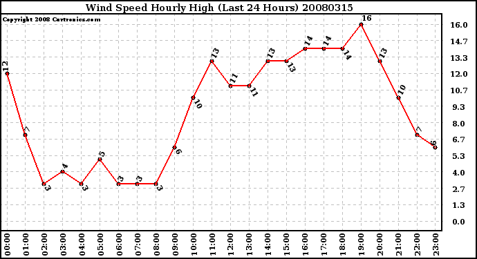 20080315 Wind Speed Hourly High (Last 24 Hours)