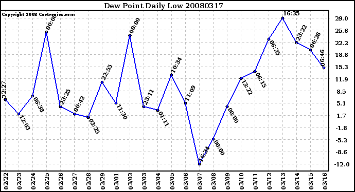 Milwaukee Weather -- 20080317 Dew Point Daily Low -- From curtronics.com by Curt Blank