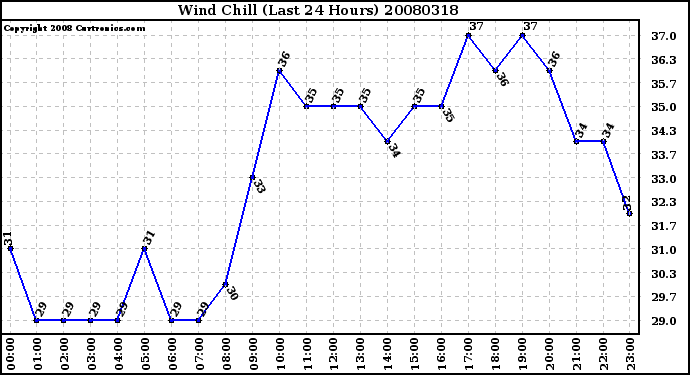 Milwaukee Weather -- 20080318 Wind Chill (Last 24 Hours) -- From curtronics.com by Curt Blank