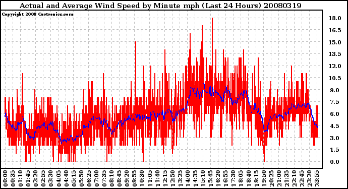 Milwaukee Weather -- 20080319 Actual and Average Wind Speed by Minute mph (Last 24 Hours) -- From curtronics.com by Curt Blank