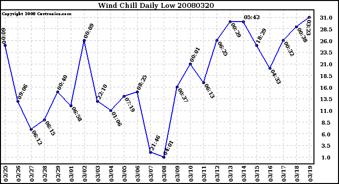 Milwaukee Weather -- 20080320 Wind Chill Daily Low -- From curtronics.com by Curt Blank
