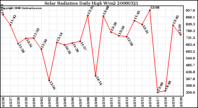 Milwaukee Weather -- 20080321 Solar Radiation Daily High W/m2 -- From curtronics.com by Curt Blank