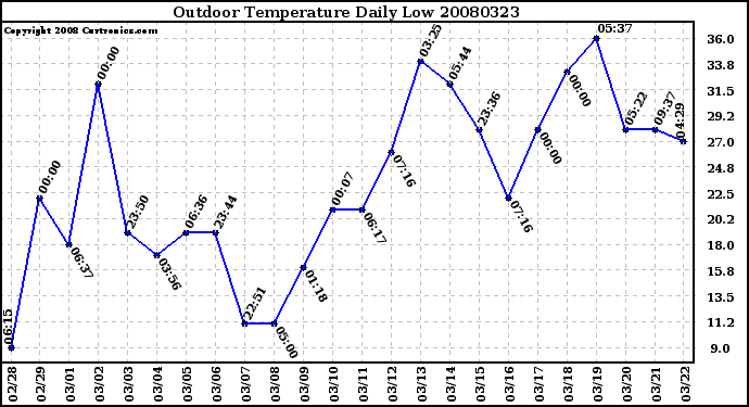 Milwaukee Weather -- 20080323 Outdoor Temperature Daily Low -- From curtronics.com by Curt Blank