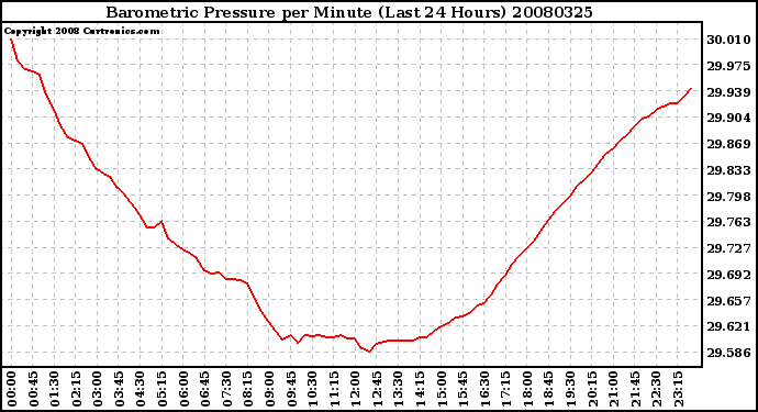 Milwaukee Weather -- 20080325 Barometric Pressure per Minute (Last 24 Hours) -- From curtronics.com by Curt Blank