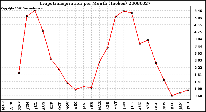 20080327 Evapotranspiration per Month (Inches)