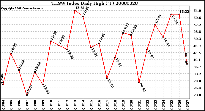 Milwaukee Weather -- 20080328 THSW Index Daily High (°F) -- From curtronics.com by Curt Blank
