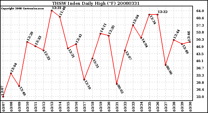 Milwaukee Weather -- 20080331 THSW Index Daily High (°F) -- From curtronics.com by Curt Blank