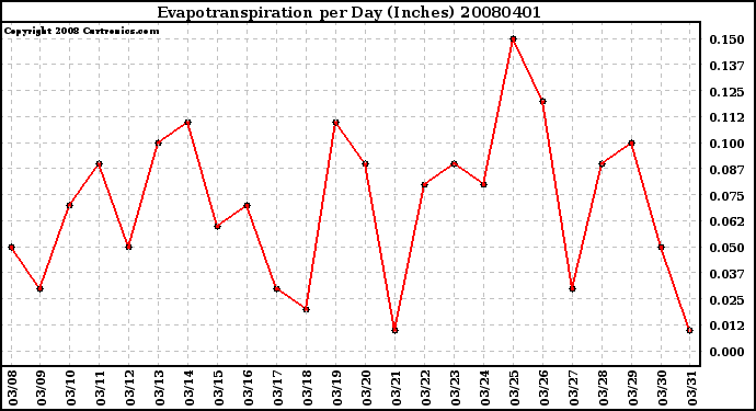Milwaukee Weather -- 20080401 Evapotranspiration per Day (Inches) -- From curtronics.com by Curt Blank
