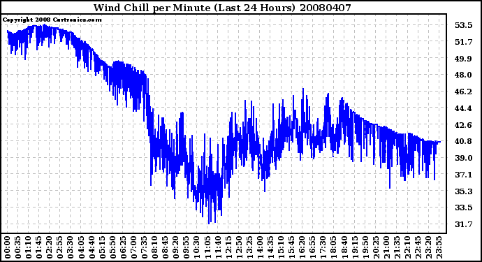 Milwaukee Weather -- 20080407 Wind Chill per Minute (Last 24 Hours) -- From curtronics.com by Curt Blank