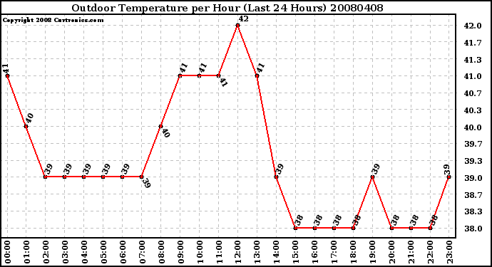 Milwaukee Weather -- 20080408 Outdoor Temperature per Hour (Last 24 Hours) -- From curtronics.com by Curt Blank