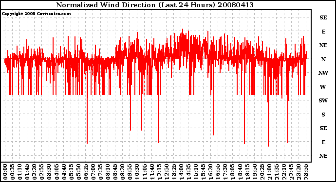 Milwaukee Weather -- 20080413 Normalized Wind Direction (Last 24 Hours) -- From curtronics.com by Curt Blank