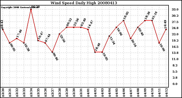 Milwaukee Weather -- 20080413 Wind Speed Daily High -- From curtronics.com by Curt Blank