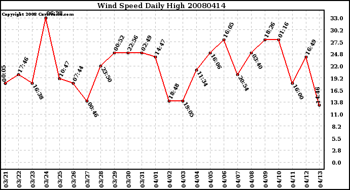 Milwaukee Weather -- 20080414 Wind Speed Daily High -- From curtronics.com by Curt Blank