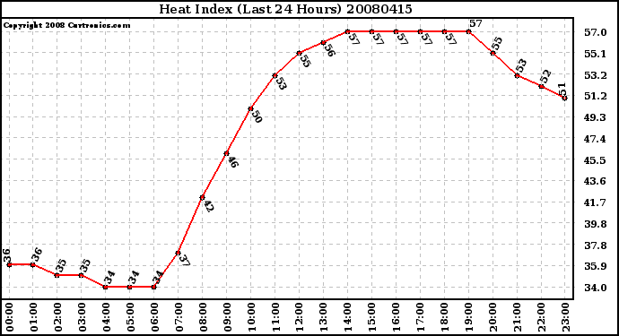 Milwaukee Weather -- 20080415 Heat Index (Last 24 Hours) -- From curtronics.com by Curt Blank
