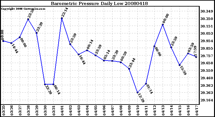 Milwaukee Weather -- 20080418 Barometric Pressure Daily Low -- From curtronics.com by Curt Blank