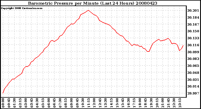 Milwaukee Weather -- 20080423 Barometric Pressure per Minute (Last 24 Hours) -- From curtronics.com by Curt Blank