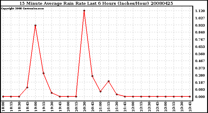 20080425 15 Minute Average Rain Rate Last 6 Hours (Inches/Hour)