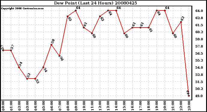 Milwaukee Weather -- 20080425 Dew Point (Last 24 Hours) -- From curtronics.com by Curt Blank