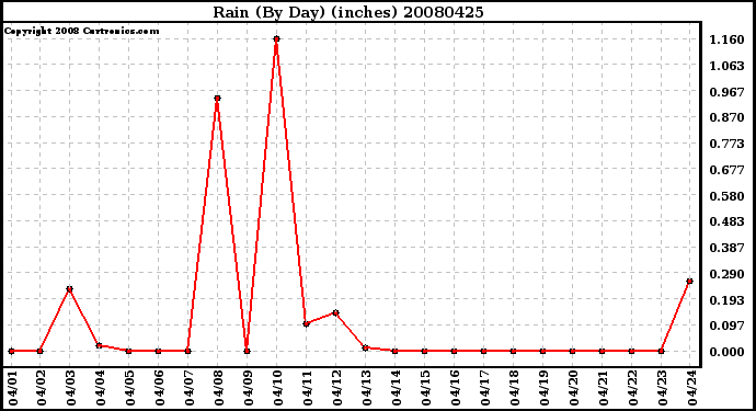 Milwaukee Weather -- 20080425 Rain (By Day) (inches) -- From curtronics.com by Curt Blank