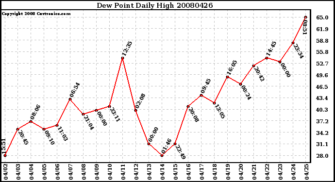 Milwaukee Weather -- 20080426 Dew Point Daily High -- From curtronics.com by Curt Blank