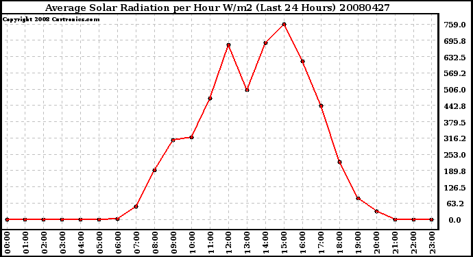 Milwaukee Weather -- 20080427 Average Solar Radiation per Hour W/m2 (Last 24 Hours) -- From curtronics.com by Curt Blank