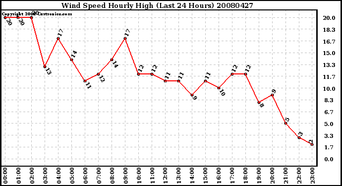 20080427 Wind Speed Hourly High (Last 24 Hours)