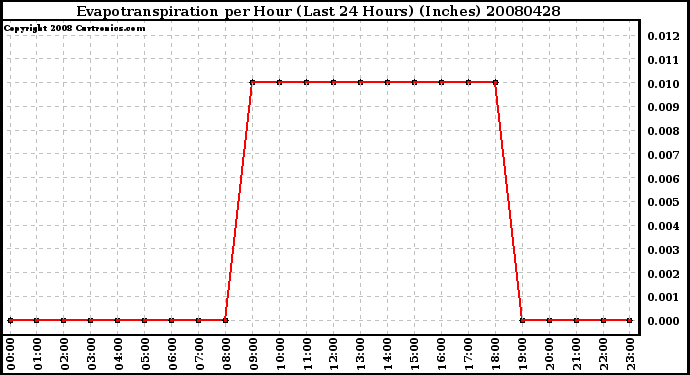 Milwaukee Weather -- 20080428 Evapotranspiration per Hour (Last 24 Hours) (Inches) -- From curtronics.com by Curt Blank