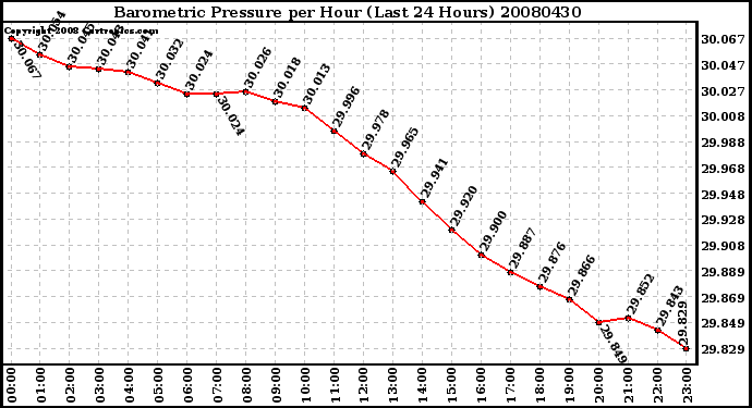 20080430 Barometric Pressure per Hour (Last 24 Hours)