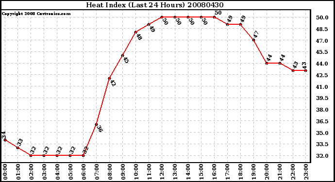 Milwaukee Weather -- 20080430 Heat Index (Last 24 Hours) -- From curtronics.com by Curt Blank