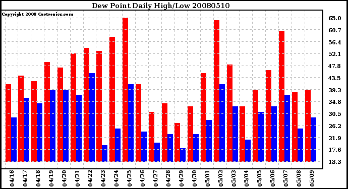 Milwaukee Weather -- 20080510 Dew Point Daily High/Low -- From curtronics.com by Curt Blank