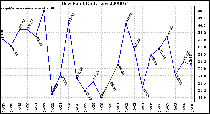 Milwaukee Weather -- 20080511 Dew Point Daily Low -- From curtronics.com by Curt Blank