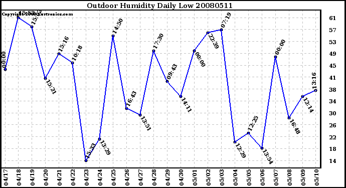 Milwaukee Weather -- 20080511 Outdoor Humidity Daily Low -- From curtronics.com by Curt Blank