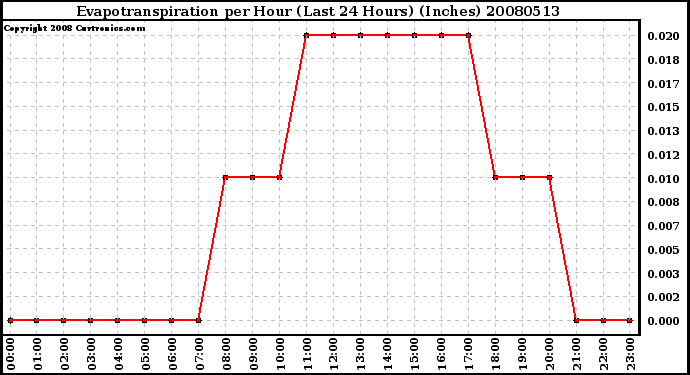 20080513 Evapotranspiration per Hour (Last 24 Hours) (Inches)