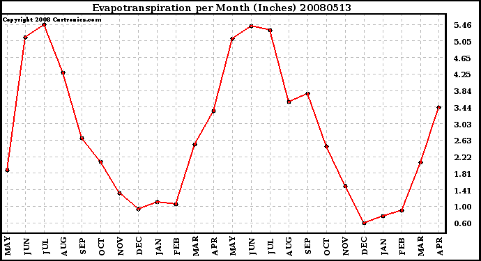Milwaukee Weather -- 20080513 Evapotranspiration per Month (Inches) -- From curtronics.com by Curt Blank