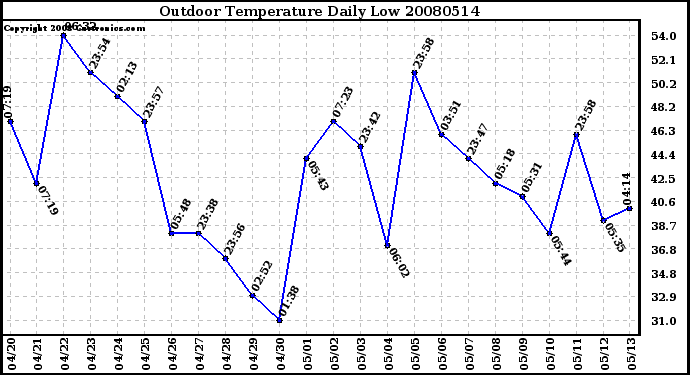 Milwaukee Weather -- 20080514 Outdoor Temperature Daily Low -- From curtronics.com by Curt Blank