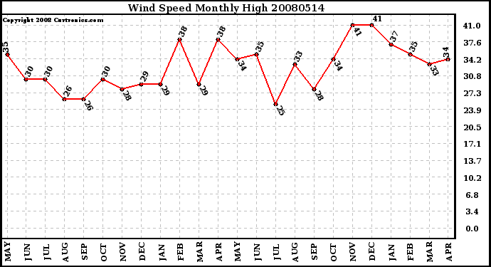 Milwaukee Weather -- 20080514 Wind Speed Monthly High -- From curtronics.com by Curt Blank