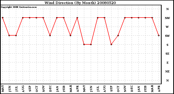 Milwaukee Weather -- 20080520 Wind Direction (By Month) -- From curtronics.com by Curt Blank