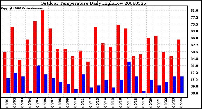 Milwaukee Weather -- 20080525 Outdoor Temperature Daily High/Low -- From curtronics.com by Curt Blank