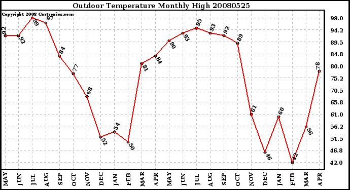 Milwaukee Weather -- 20080525 Outdoor Temperature Monthly High -- From curtronics.com by Curt Blank