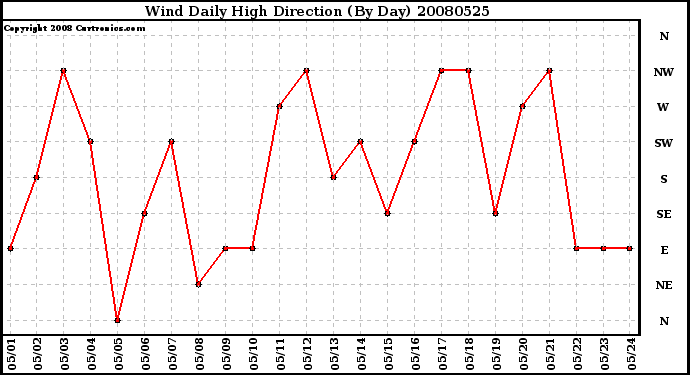 Milwaukee Weather -- 20080525 Wind Daily High Direction (By Day) -- From curtronics.com by Curt Blank