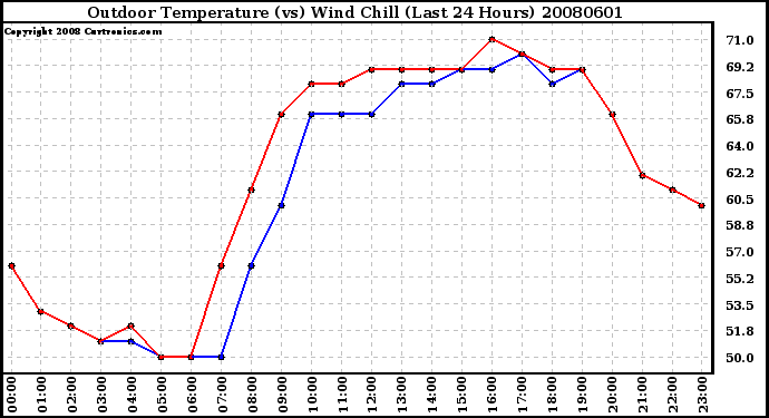 Milwaukee Weather -- 20080601 Outdoor Temperature (vs) Wind Chill (Last 24 Hours) -- From curtronics.com by Curt Blank