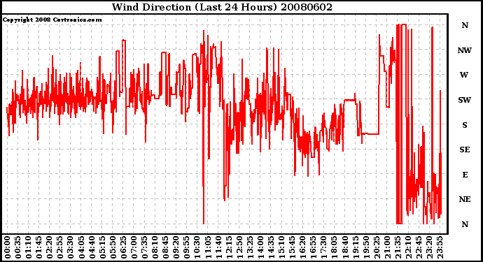 Milwaukee Weather -- 20080602 Wind Direction (Last 24 Hours) -- From curtronics.com by Curt Blank
