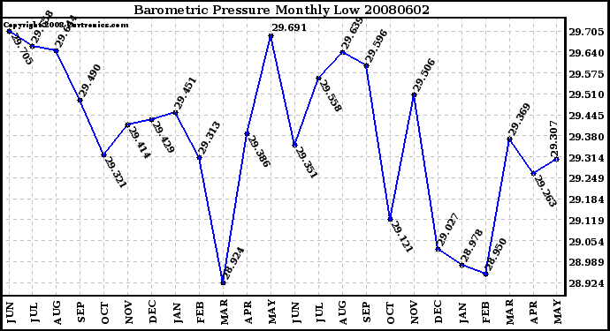 20080602 Barometric Pressure Monthly Low