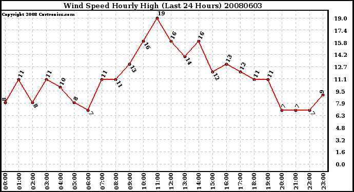 20080603 Wind Speed Hourly High (Last 24 Hours)