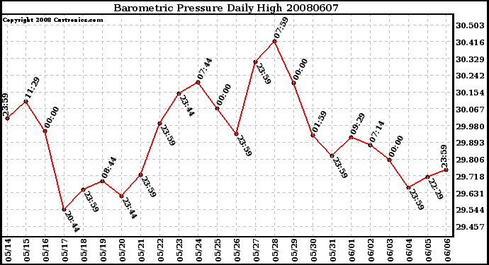 Milwaukee Weather -- 20080607 Barometric Pressure Daily High -- From curtronics.com by Curt Blank
