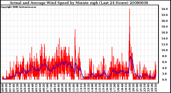 20080608 Actual and Average Wind Speed by Minute mph (Last 24 Hours)